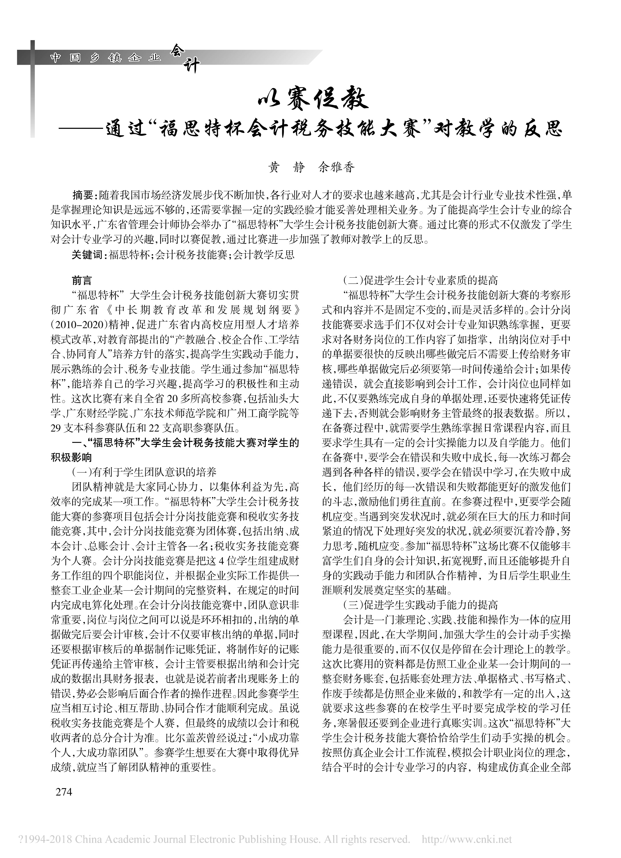 • 以賽促教——通過“福思特杯會計稅務技能大賽”對教學的反思